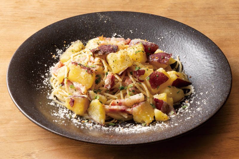 上品な香りと甘み、なめらかな舌触りが特徴の「なると金時」に、旨味とコクが凝縮したパンチェッタを合わせました。甘味・塩味・旨味が心地よく調和し、ペペロンチーノならではの香りが食欲をそそります。