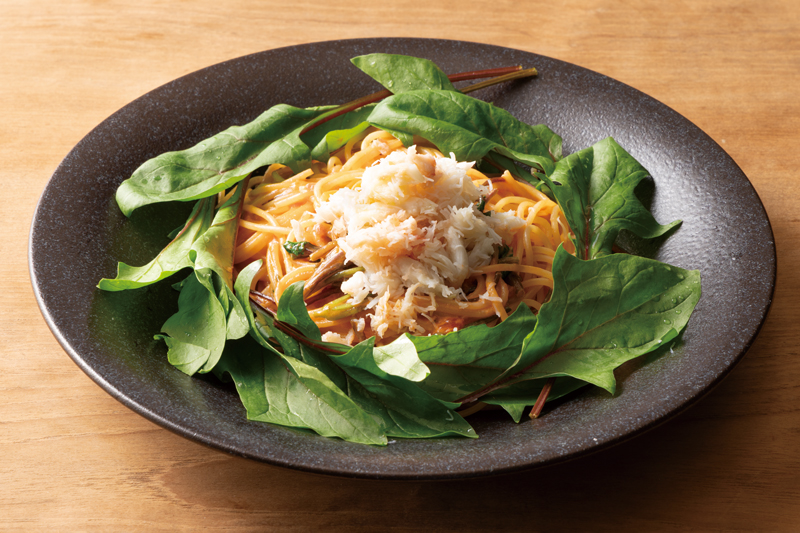 【赤軸ほうれん草とずわい蟹のトマトクリーム】