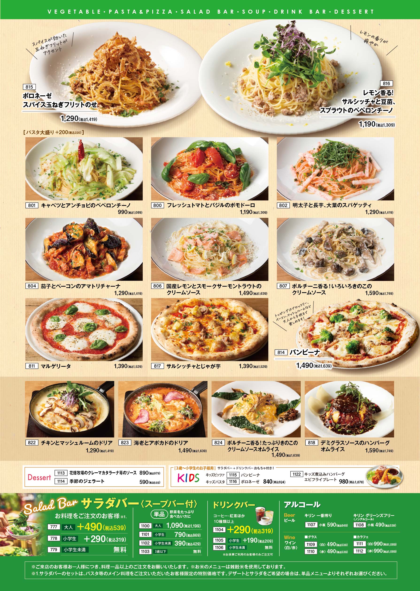 上質な食材を使用したパスタを中心に、お野菜たっぷりの料理が自慢のモダンイタリアンレストラン。 契約農家さんや地元埼玉をはじめ日本全国の厳選野菜やスーパーフードを使用したサラダバーをお楽しみいただけます。